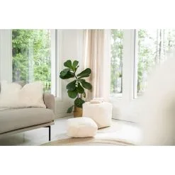 AINA Vilja is a hand-made footstool. It is suitable as an additional seat or under the legs for a sofa corner. The earthy color is suitable for many spaces.