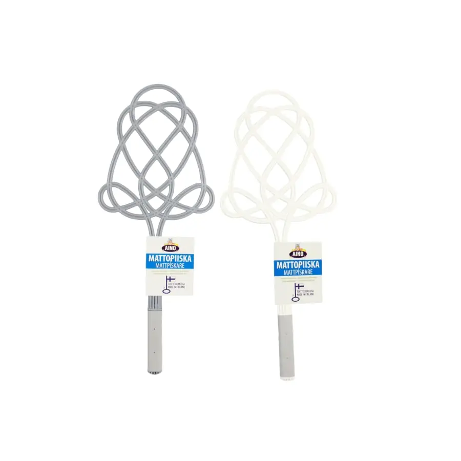 This carpet beater is designed to withstand years of use. The plastic is durable and light that can perform in any weather. The handle is non-slip rubber to provide a sturdy and comfortable grip. Made in Finland.