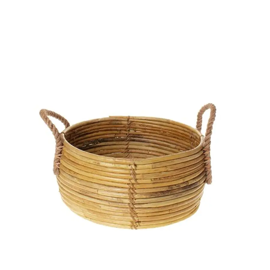 Multipurpose sturdy rattan basket with handles made of jute braid. Diameter: 34cm, Height: 16cm