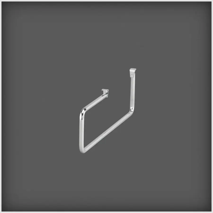 Elfas rejäla klädhängare passar till Elfas trådhyllor. Bekväm installation utan verktyg. Bredd 272 mm, tjocklek 11 mm, höjd 188 mm. Material kromat stål.