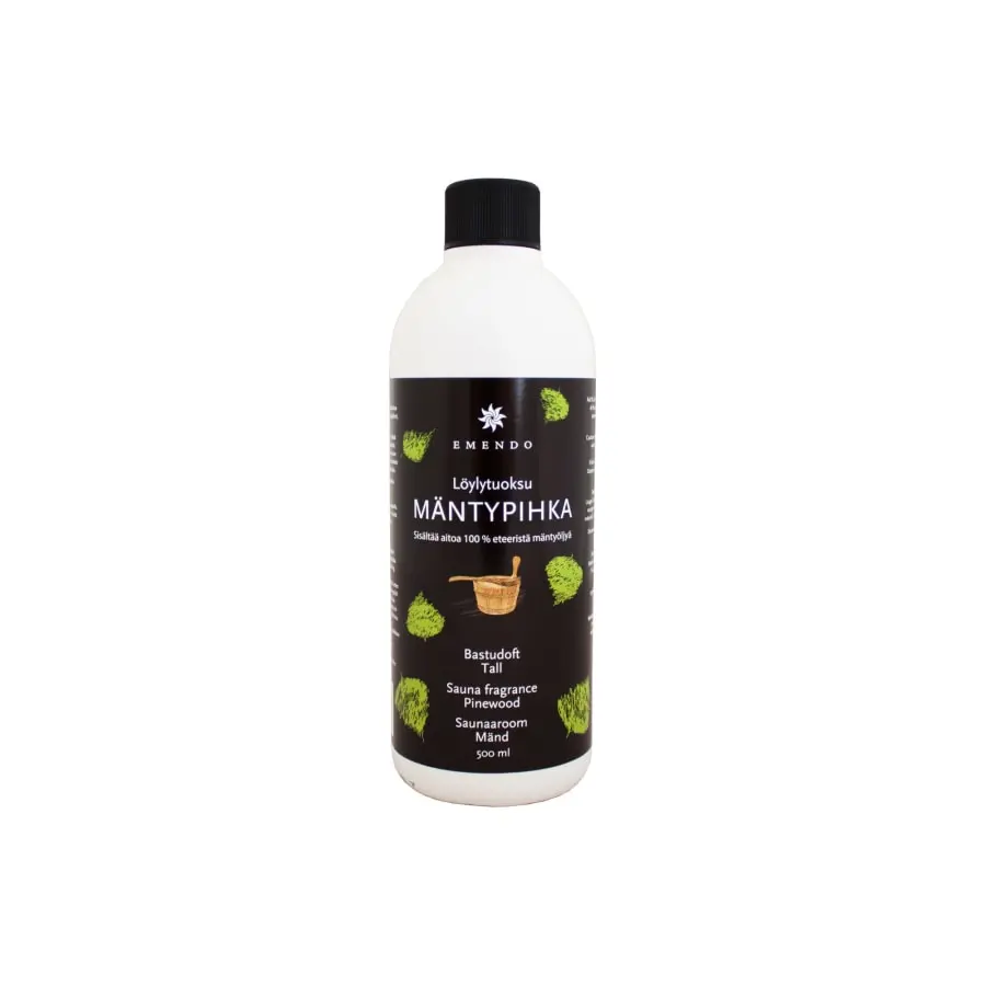 Sauna fragrance contains 100 % essential oil of pinewood. Does not contain synthetic parfumes. Add ½ dl of sauna fragrance to water ( 3 l), throw over the hot stones of the sauna stove, enjoy the aroma and relax.
