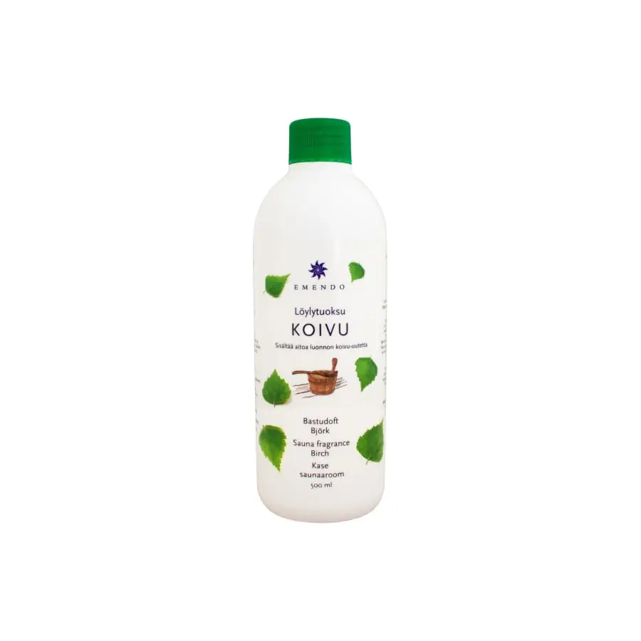 Sauna fragrance Birch in a bottle of 500 ml. Emendo sauna fragrances add a pleasant scent to the sauna and make the sauna experience even more enjoyable.