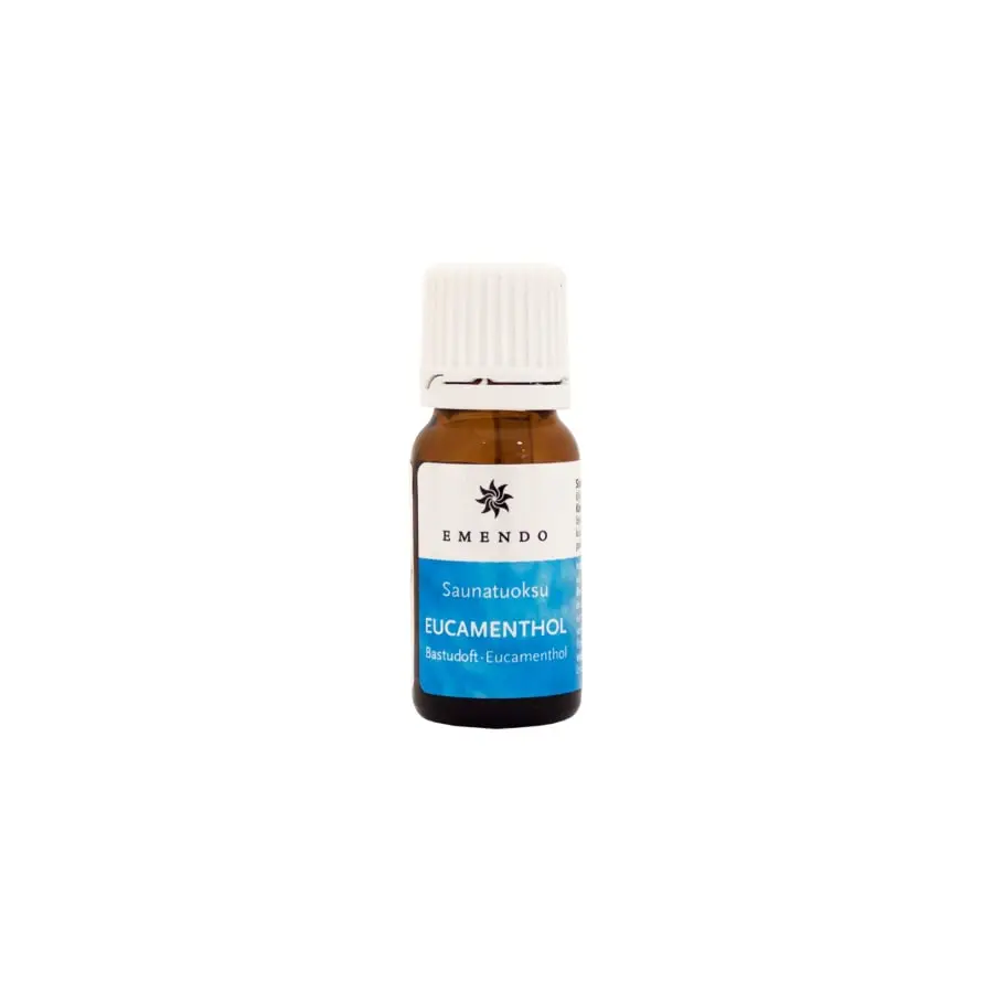 Emendo sauna fragrance Eucamenthol is made of 100 % essentials oils: eucalyptus and menthol. Add 2-6 drops of sauna fragrance to a scoop of water, throw over the hot stones of the sauna stove and enjoy your fragrant, atmospheric sauna