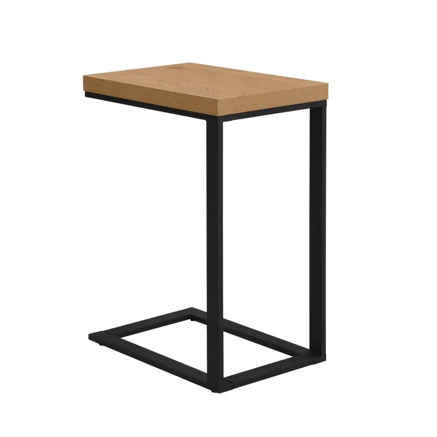 Help desk e.g. next to the sofa. Black metal legs, oak-colored coated MDF cover. Cover thickness 3.5 cm.
