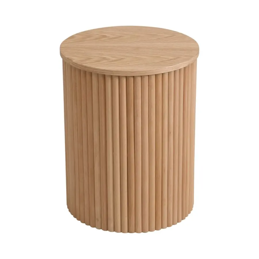 Ett färdigmonterat ljus ekfärgat soffbord.