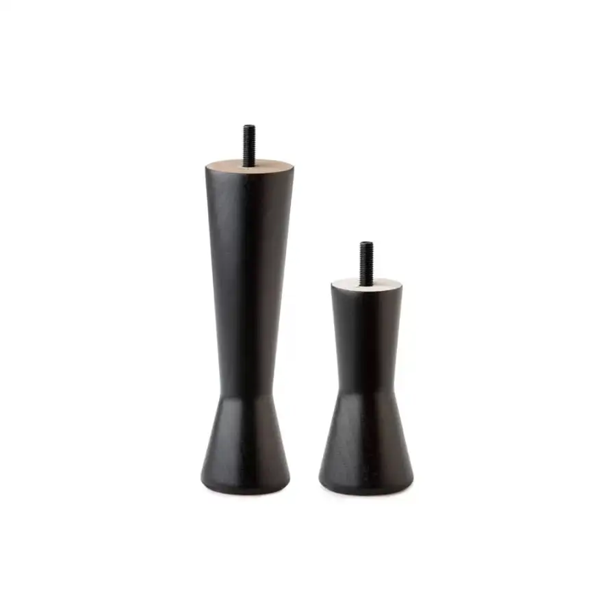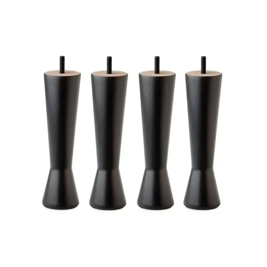 The beautiful modern design of the sculptural Familon Shape leg set completes your new bed as part of the interior. The round hourglass-shaped set of legs is made of strong birch painted black. The leg set is easy to attach to the bed frame by twisting, without tools. By choosing the height of the legs that suits you best, you ensure that it is easy to get out of bed. We recommend a 20 cm high leg set for a frame mattress and a 12 cm high leg set for a Yankee bed. The leg set includes four bed legs and felt feet. Heights 12cm, 20cm