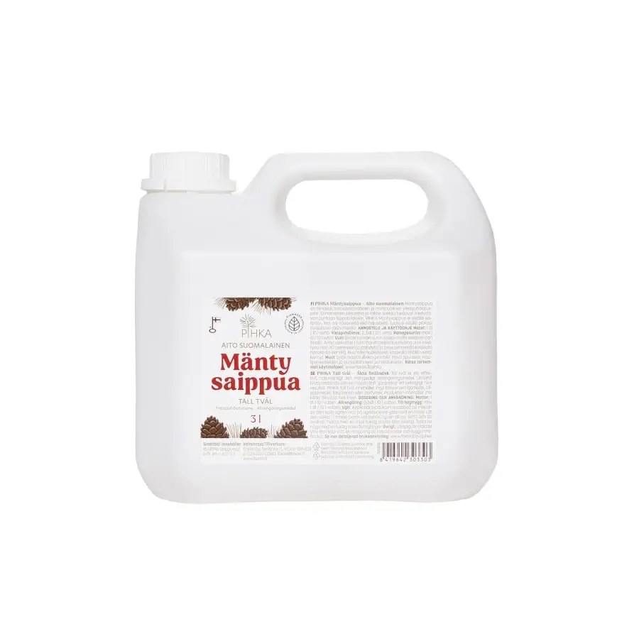 The natural cleaning power of pine soap has been known in Finland for a long time. Pine soap is an effective, nature-friendly and versatile general cleaning agent. Cleaning power of pine oil derived from pine tree resins. Excellent washing power and a fresh scent guarantee a pleasant clean result. PIHKA pine soap contains no preservatives or additives, and neither it contains any synthetic dyes or perfumes. Areas of application: carpets, floors, oven, kitchen, bathroom.