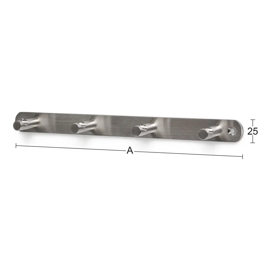 Material brushed stainless steel. 4 hooks. Length 300 mm.