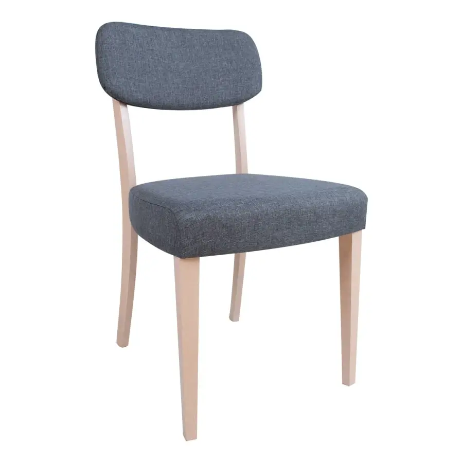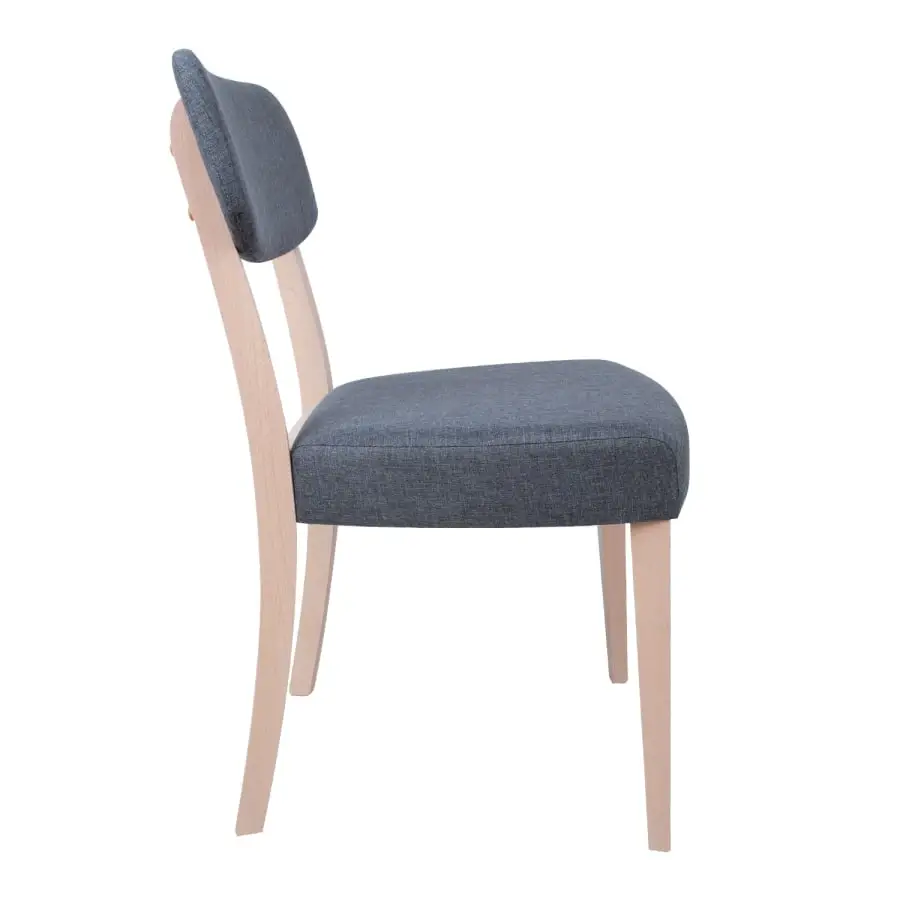 Chair ADORA 49x58xH85.5cm, seat height 50cm. The chair is made of solid beech. The seat and backrest are upholstered and covered with gray polyester fabric. The wooden parts are finished with wood-colored white lacquer. Weight limit 100 kg.