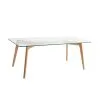 The Amsterdam dining table is a contemporary combination of oak and black metal. Black metal frame and table cover made of melamine board.
