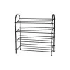 Shoe shelf BENO light brown. A practical shelf is well suited for storing footwear in the hall. The seat on the shelf is upholstered and covered with black PVC material. There are two shelves under the seat for convenient storage of shoes. The shelf is made of oak-decorated laminate board. The steel pipes are finished with a chrome tone.