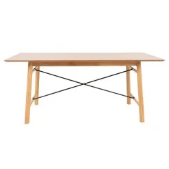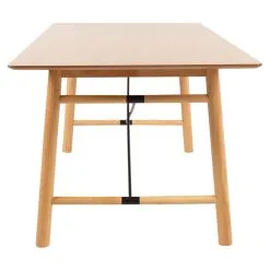 Graceful and stylish dining table Emerald. The table top is made of oak veneered MDF board. The legs and body are made of rubber wood. Black metal support structure. The table is finished with clear lacquer.