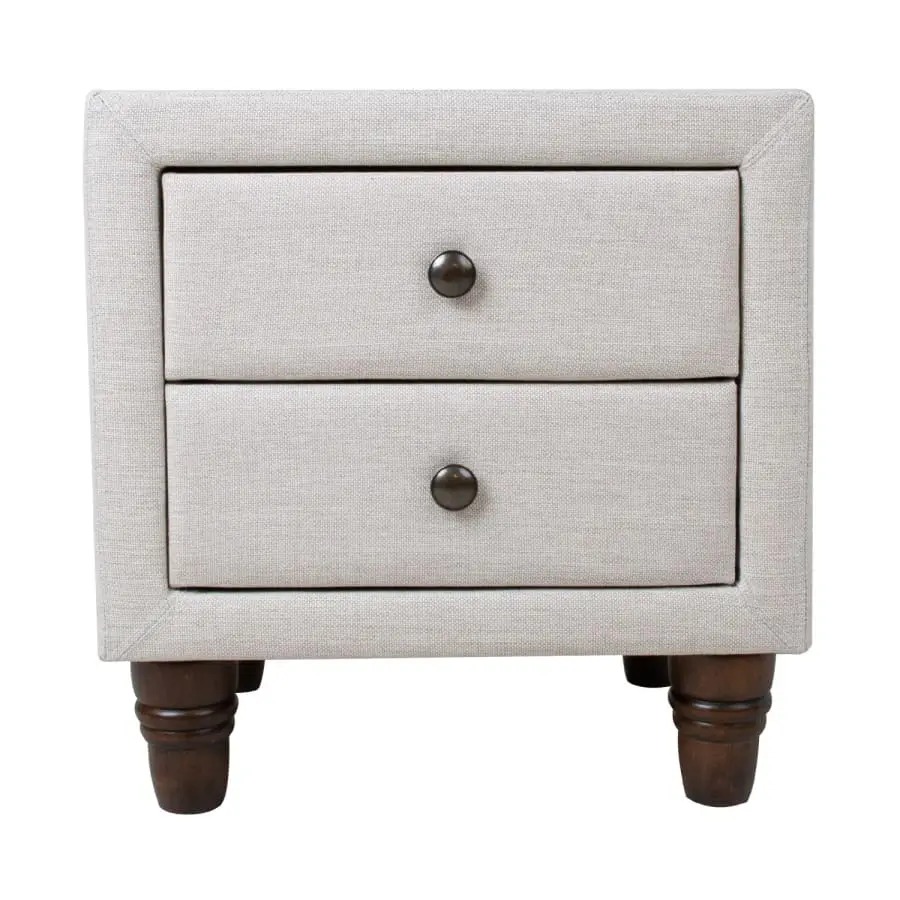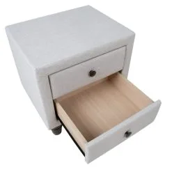 Sängbordet Emilia passar perfekt till sängen i samma serie! Sängbordets stomme är gjord av MDF-skiva och klädd med polyestertyg. Lådor med metallskenor.