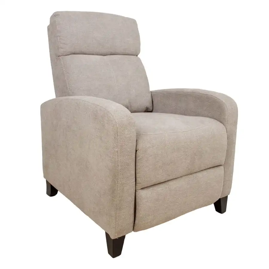 The position of the backrest and footrest can be changed with a manual push mechanism. This type of mechanism does not have a button or lever to adjust the position of the armchair. The mechanism starts when pressure is applied to the backrest. Cover material: 100% polyester. Frame: wood, metal. Upholstery: polyurethane foam. Overall dimensions 68x91xH100cm.