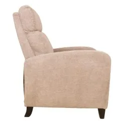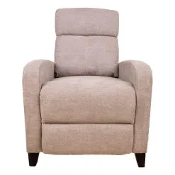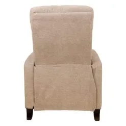 Ryggstödets och fotstödets läge kan ändras med en manuell tryckmekanism. Denna typ av mekanism har ingen knapp eller spak för att justera fåtöljens läge. Mekanismen startar när tryck appliceras på ryggstödet. Täckmaterial: 100% polyester. Ram: trä, metall. Klädsel: polyuretanskum. Totalmått 68x91xH100cm.