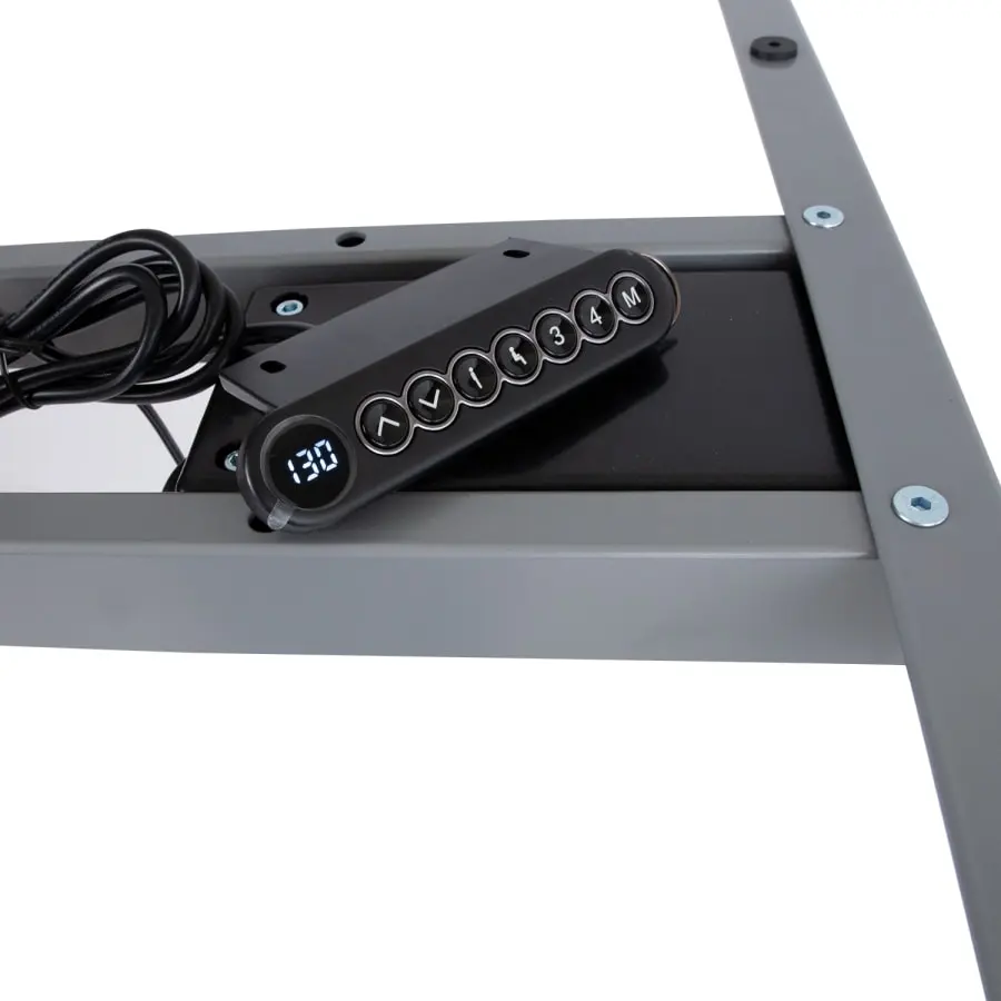 Gör din arbetsmiljö bekväm och håll dig frisk! Två elmotorer och ett trestegs lyftsystem garanterar snabb, mjuk och tyst (<50dB) rörelse. Maximal lyfthastighet 35 mm per sekund. Inspänning: 100V-240V. 3 positioner kan lagras i enhetens minne.