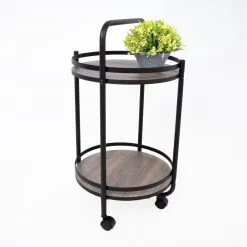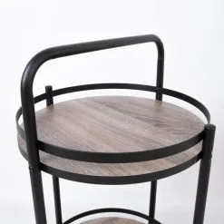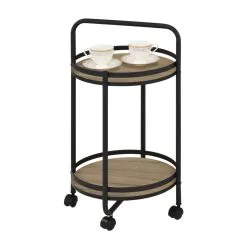 Dining table GENOA brown. A stylish and convenient serving table helps every day and also makes it easier to entertain guests at home. The shelves are made of oak-decorated laminate board. The steel pipes are coated with black powder paint. The serving table has four wheels that make it convenient to move. The dimensions of the table are 44 x 44 x 75 cm.