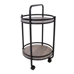 Dining table GENOA brown. A stylish and convenient serving table helps every day and also makes it easier to entertain guests at home. The shelves are made of oak-decorated laminate board. The steel pipes are coated with black powder paint. The serving table has four wheels that make it convenient to move. The dimensions of the table are 44 x 44 x 75 cm.