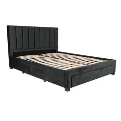 En underbar stilren dubbelsäng Grace 160×200, utan madrass. En säng klädd i ett underbart sammetstyg, med tre lådor ger extra förvaringsutrymme i sovrummet. Sängens ram är gjord av MDF-skiva och klädd med grått polyestertyg. Lamellbottnarna ingår i paketet.