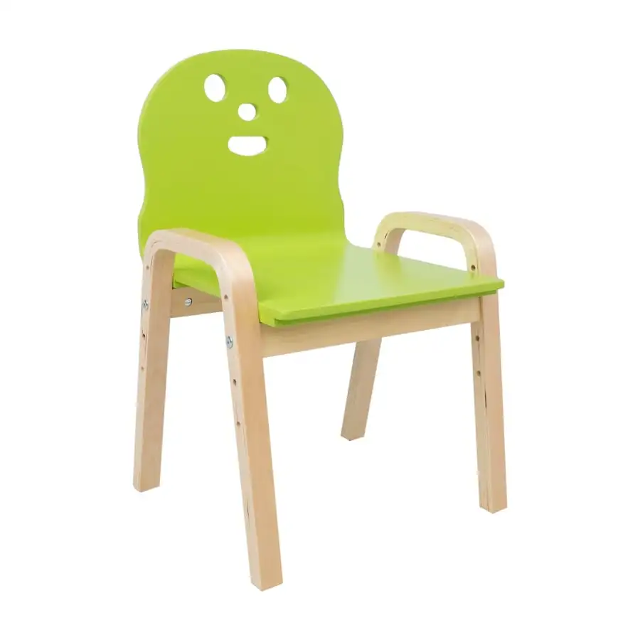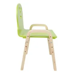 Children’s chair HAPPY. The chair HAPPY grows with your child! The height of the seat can be increased four times according to the child’s height – 21/25.5/30/34.5 cm. The overall dimensions of the chair are 39x36xH46.5/51/55.5/60cm. Seat width 33 cm, seat depth 31 cm, backrest height 27 cm, armrest height from the ground 36 cm. Material: bent poplar plywood with birch veneer. The seat is painted, the legs and body are finished with natural varnish. Weight limit 40kg.