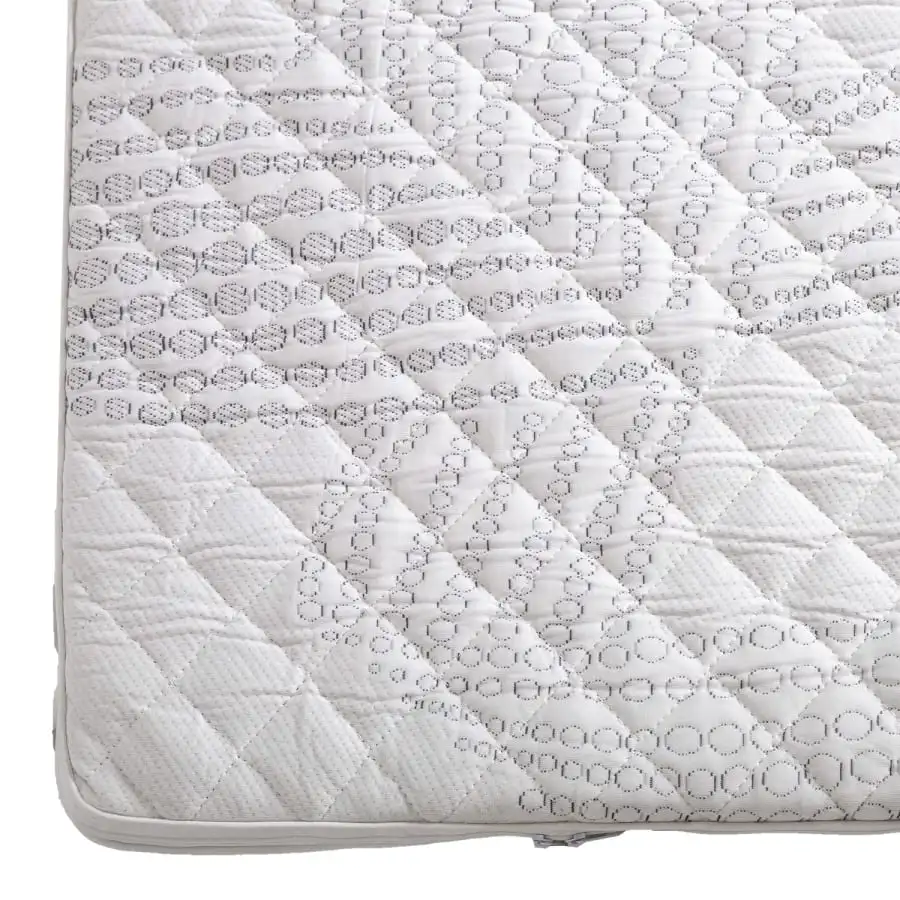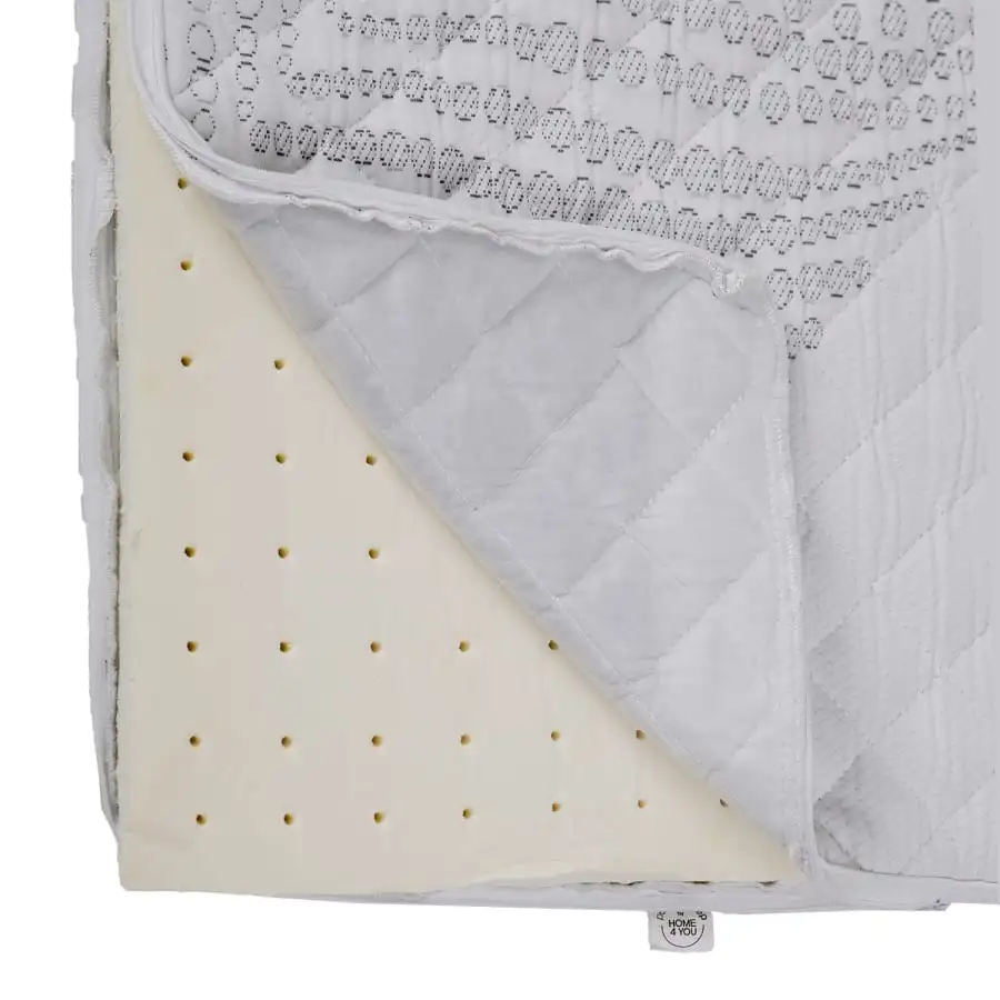 Madrassens insida är av hög kvalitet och naturlig latex (3 cm tjock). Som material är latex mjukt, elastiskt och perfekt genomsläppligt för luft och reglerar sin egen fukthalt. Madrassen är täckt med mjukt och andningsbart stretchtyg. Överdraget är avtagbart och kan tvättas. Ersättningsmadrassen mjukar upp basmadrassens hårdhet och förlänger madrassens livslängd. Packad på rulle.