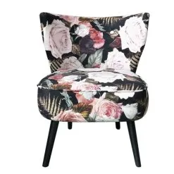 The lovely flower-patterned armchair La Perla, brings a romantic look to your interior! Wood frame and upholstery with velvety polyester fabric.
