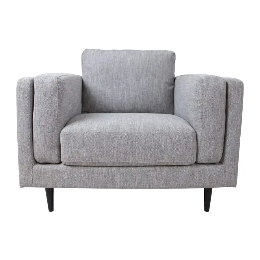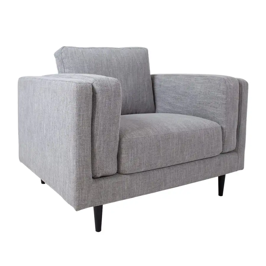 A wonderfully plush Lisbon armchair. Upholstery 88% polyester, 12% viscose, 20,000 Martindale. Galvanized steel frame, fully wrapped in PU foam. Suspension: high-quality high-tensile 9g springs. Upholstery: 1st layer under the seat upholstery material is thick and soft polyester fiber, the second layer below is soft polyurethane foam, which together make the seat comfortable and beautifully shaped. On top of the suspension is a 3rd layer of dense polyurethane foam that supports the seat properly. The backrest cushion is filled with channeled thick polyester fiber. Wood-looking steel legs. Compared to traditionally made upholstered furniture with wooden frames, the metal frame is significantly more durable and lighter.