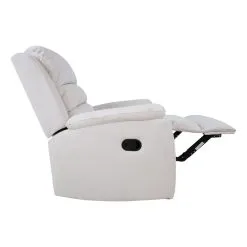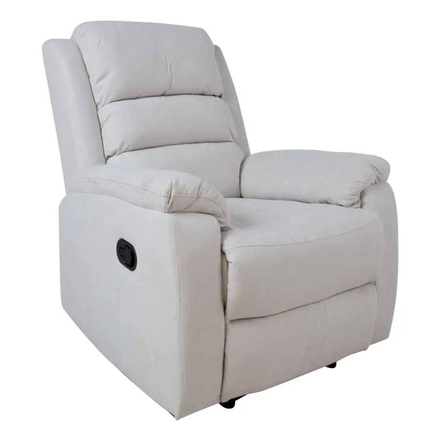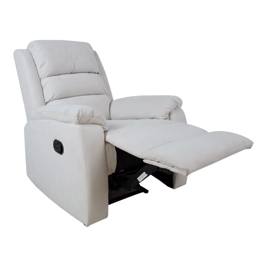 Wonderfully plush Manuel mechanism chair. The position of the seat back and footrest can be changed with a manual mechanism. When the footrest rises, the backrest moves smoothly to the rest position. Frame made of wood and metal. Padding polyurethane foam 24kg/m³ and upholstery 100% polyester.