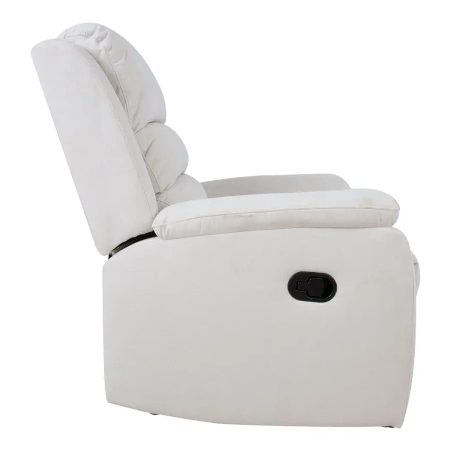 Underbart plysch Manuel mekanismstol. Positionen på ryggstödet och fotstödet kan ändras med en manuell mekanism. När fotstödet höjs förflyttas ryggstödet mjukt till viloläge. Ram av trä och metall. Vaddering polyuretanskum 24kg/m³ och klädsel 100% polyester.