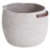 Korg med handtag MAX D33xH32cm, vävd, färg: ljusbrun, spetstyg. Korgmaterial: färgad delad pil, tyg: tyg med spets.