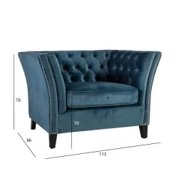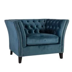 Snygg sammetsfåtölj Mayers med vackra dekorativa knappar. Träram. Sicksack och fickupphängning. Vaddering polyuretanskum 30kg/m³ och klädsel 100% polyester. Träben.