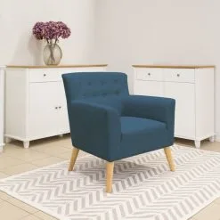 Stylish armchair Movie with a beautiful design. Frame made of solid wood and plywood. Zig-zag and Bonnell suspension. Padding polyurethane foam 24-28kg/m³ and upholstered with 100% polyester. Wooden legs.