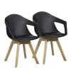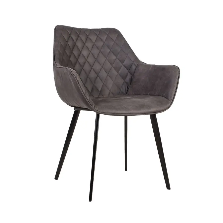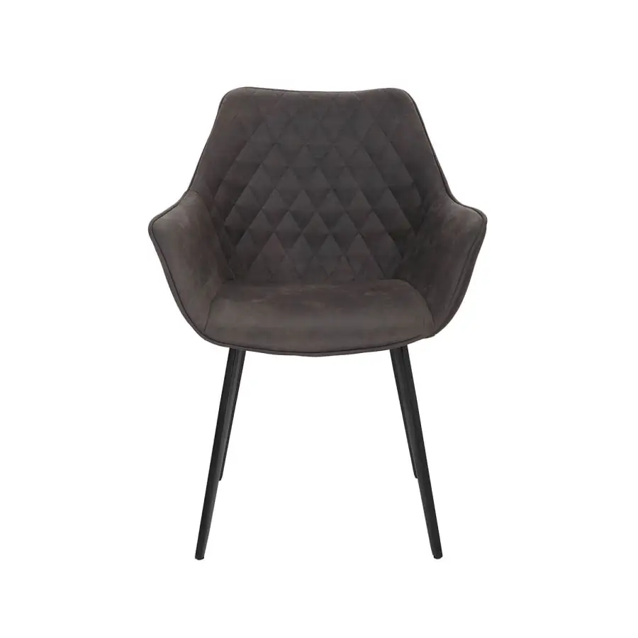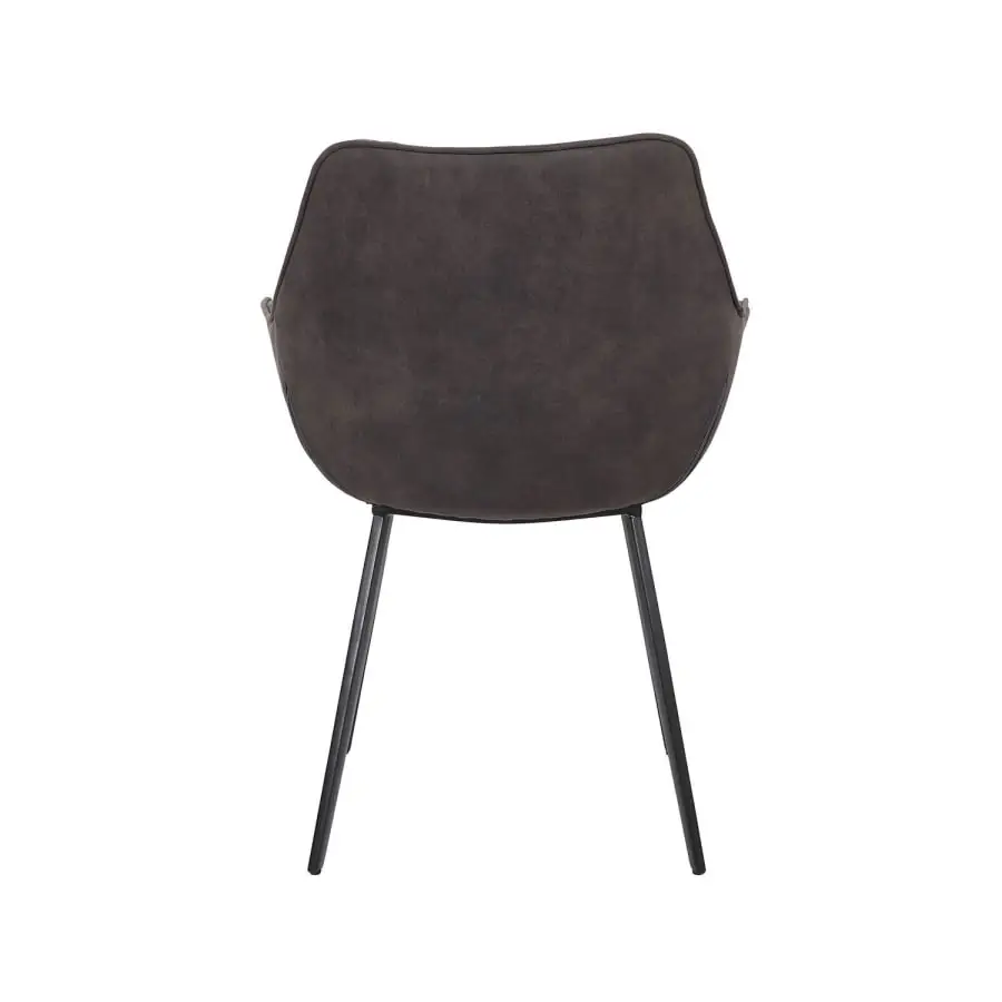 Dining table chair Naomi with beautiful patterns and design. Upholstered with polyester fabric (light brown artificial leather) and black metal legs.