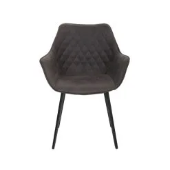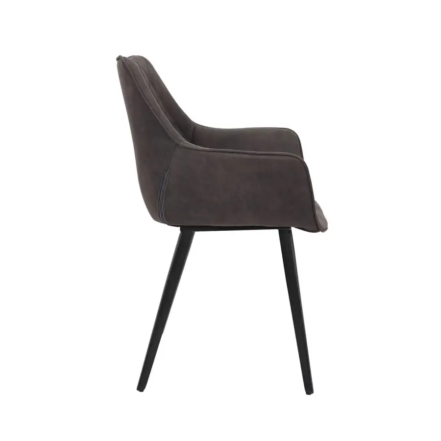 Matbordsstol Naomi med vackra mönster och design. Klädd med polyestertyg (ljusbrunt konstläder) och svarta metallben.