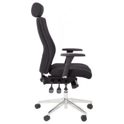 Kontorsstolen Smart Extra har en särskilt slitstark klädsel och många justeringsmöjligheter. Sits och ryggstöd klädda i slitstarkt polyestertyg, 130 000 Martindale. Multifunktionell mekanism, sitsdjup och ryggstödshöjd justerbar. Sitsens höjd kan justeras med en gasfjäder och lutningen på sitsen kan justeras. Armstöden är gjorda av polyuretan och deras höjd är justerbar. Nackstödets höjd och lutning är justerbara. Bengaller: polerat aluminiumgaller. Hjul: gummihjul D60mm, stift 11mm.