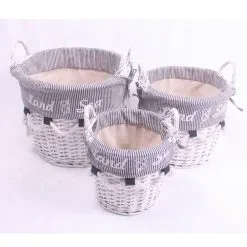 Rund korg WILLI SEA, S: D23xH22cm, vit. Korgmaterial: handvävd naturpil, färg: vit, textilfoder: blårandig bomull med rep. Text: Land&Sea.