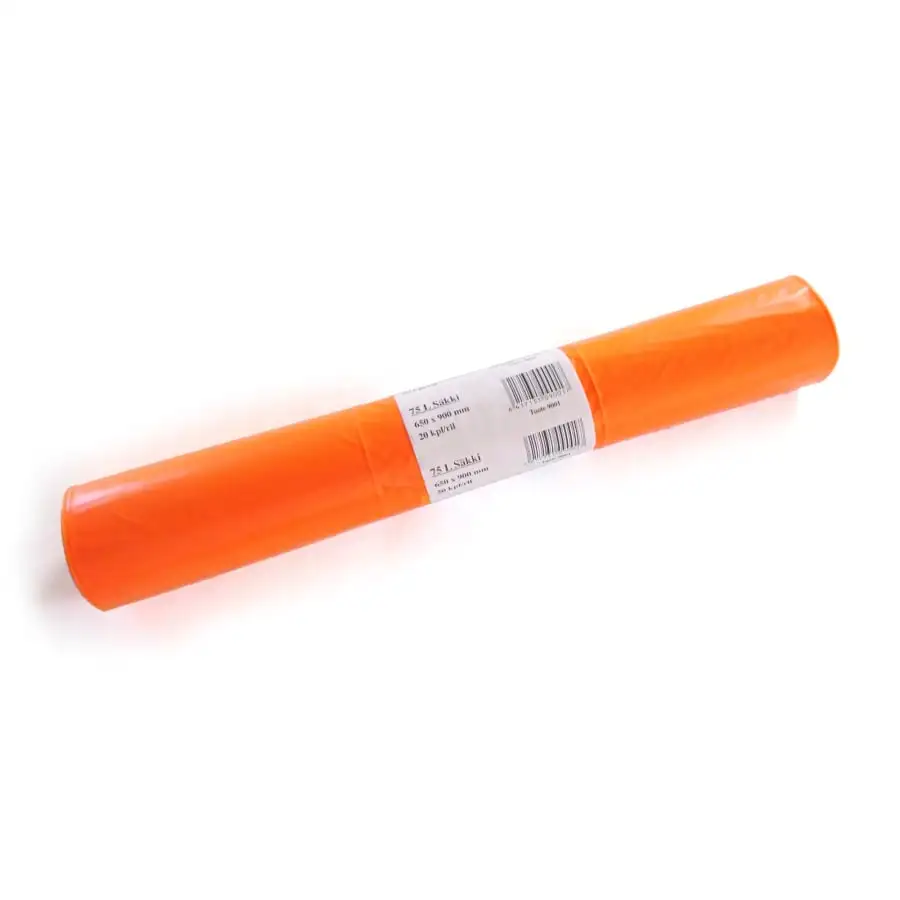 Orange 75 litre LD-PE garbage bag (20 pc/roll). Size of the bag: 650 x 900 mm.