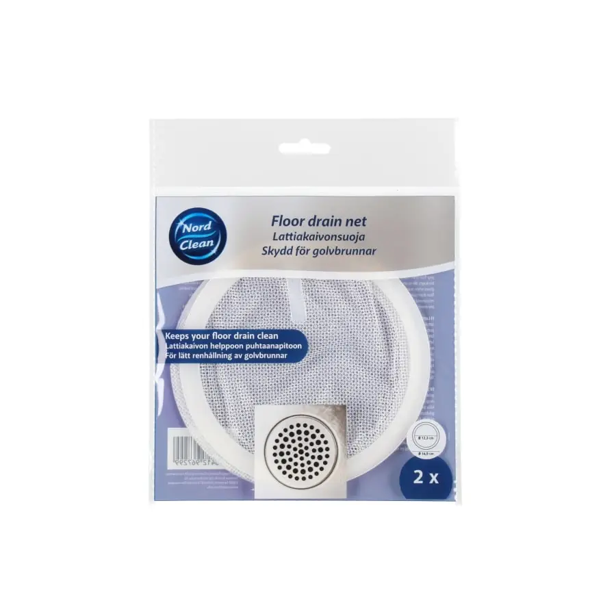 Dia 14,5 cm. Protective net in the floor drain, prevents, for example, hair and debris from entering the sewer and helps keep the floor drain clean for longer. Before using for the first time, clean the floor well thoroughly. Be sure to clean the floor drain at regular intervals to avoid clogging. It is a good idea to wear protective gloves when cleaning.