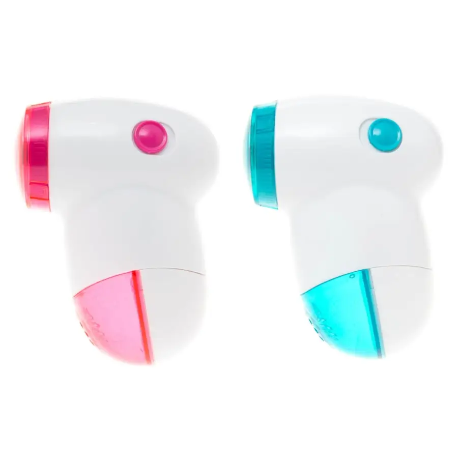 Removes lint and fluff from textiles. Includes a small brush for cleaning the item after use. Needs two AA batteries. Not included.