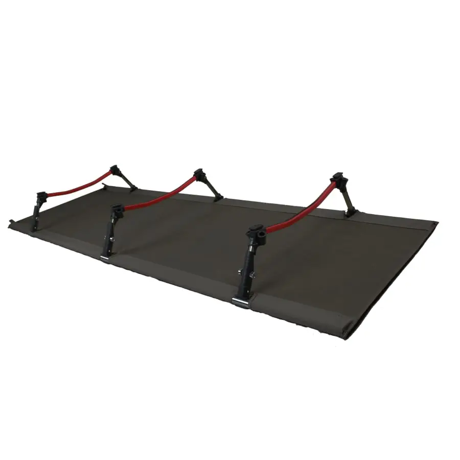 Sängyn sivurunko muodostuu toisiinsa kiinnitettävistä alumiiniseosputkista, jotka ovat erittäin kevyitä, mutta kestävät raskaankin painon. Out-Zone Easy mallin retkisängyssä alumiiniseoksesta valmistetut jalat kiinnitetään sivurunkoihin helpolla pikalukituksella, joka ei vaadi voimaa. Lisäksi Easy mallin mukana toimitetaan lisäjalat, joilla saat halutetessasi nostettua sängyn korkeutta n. 20 cm. Sängyn kantavuus on peräti 130 kg.