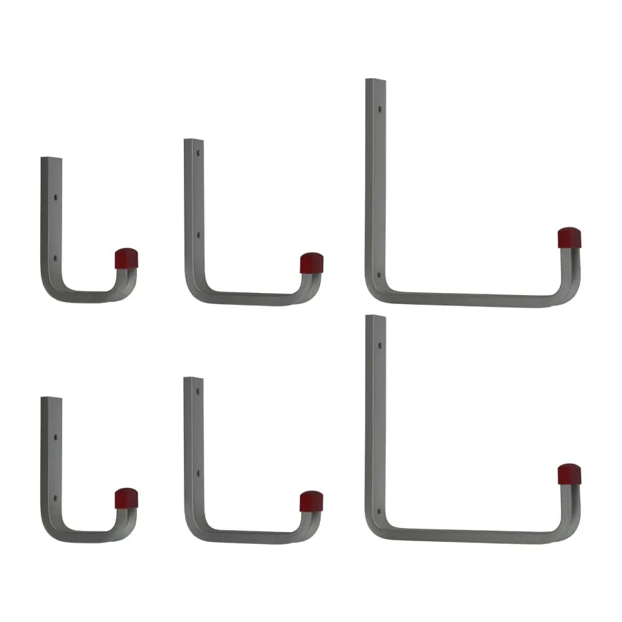 A set of aluminum hooks with plastic end caps. Material: aluminum. Contains 2 pcs 120x80mm + 2 pcs 135x120mm + 2 pcs 190x190mm.