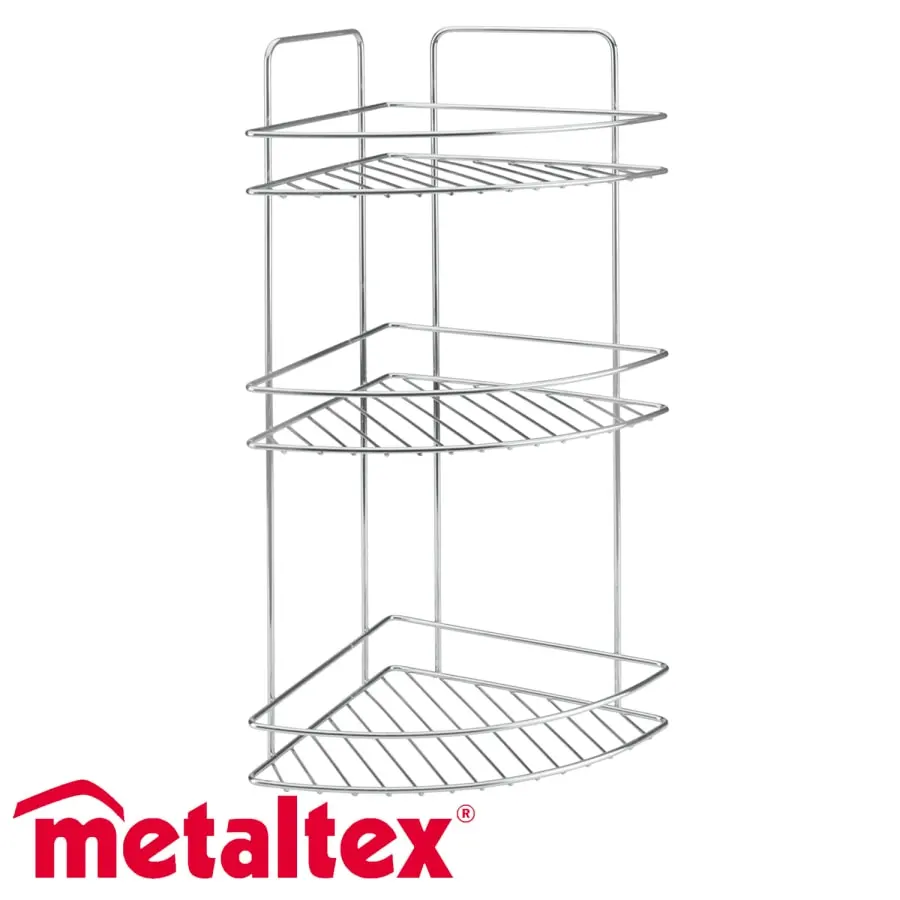 Chrome-plated 3-level corner shelf. Dimensions 22x22x53 cm.