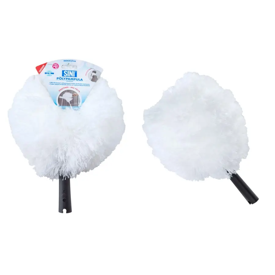 SINI Pölybampula är en plyschdammare som framgångsrikt tar bort damm och spindelväv från tak, hörn, trä- och stockytor och andra svåra ställen. Dammbomullen har en stor yta som samlar damm och mikrofibermaterialet binder damm till sig själv utmärkt. Produktens ögleliknande form ökar användbarheten. Dammkudden passar SINI-handtaget, vilket gör det enkelt att torka av damm från högt upp och under låga möbler.