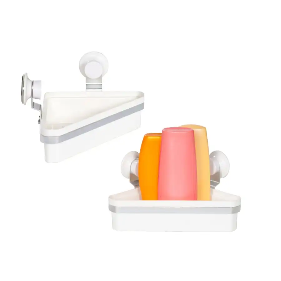 The light and versatile SINI Screwless corner shelf is suitable for bathrooms, kitchens and utility rooms. The stand is attached with suction cups to a smooth tile or glass surface without drilling or screws. The attachment is based on a unique patented suction cup surrounded by an airtight and waterproof silicone ring. The corner shelf is a solution for the corner model, so detergents can always be found in the right place. Build the most suitable whole from the various products of the Ruuviton series by combining different parts as you wish!