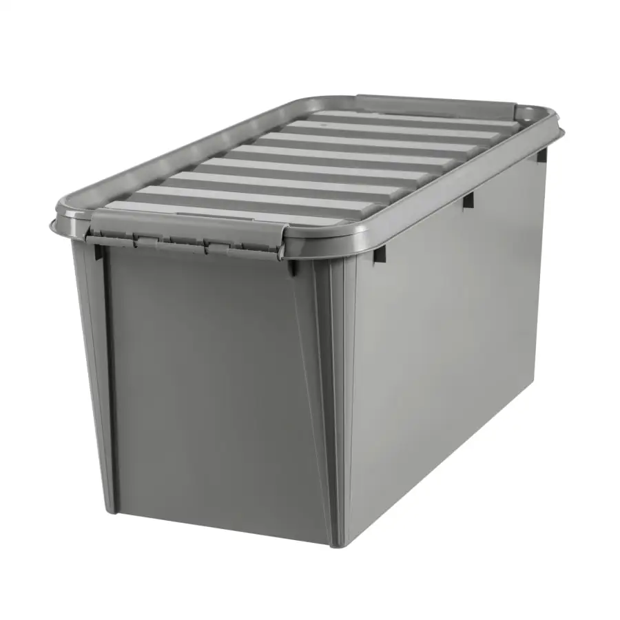 En mångsidig förvaringslåda av återvunnen plast för förvaring av hem- och kontorsartiklar. Utmärkt till exempelvis kontors- och hantverksmaterial, städgarderober och kosmetika. Förvaringslådan av återvunnen plast är inte lämplig för mat.