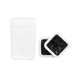 Townew T1C is a trash can that automatically opens and closes the lid using a sensor and seals and changes the trash bag for you. It detects when the trash can is full, and the trash bag automatically seals. Automatic technology is designed to keep your hands clean. The trash can comes with one filling ring that contains 25 trash bags. The trash can has a rechargeable battery that can be charged with the included power adapter.